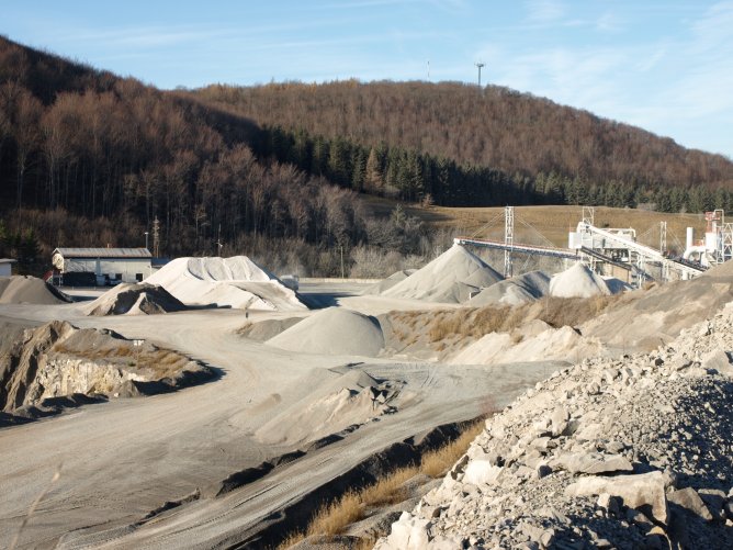 Apnenec s tamkajšnjega pridobivalnega prostora omogoča kvalitetno predelavo v pesek, drobljenec in tamponski material. Zaradi bližine Asfaltne baze Senožeče ta material v pretežni meri uporabljamo za lastno proizvodnjo asfaltnih zmesi. Visokokakovostni materiali zagotavljajo zadovoljstvo tudi najzahtevnejšim odjemalcem.
