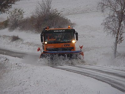 Prvi teden novembra je že mimo, teden v katerem je tudi že zima pokazala prve zobe. S tem pa je prišel tudi čas, da presodimo, kako smo ob prvi akciji ravnali mi, cestarji. Res je, da je sneg pobelil le okolico Postojne in Brkine, toda naši cestarji so bili na sneg pripravljeni in se niso pustili presenetiti. Prvič v tej zimi smo pri svojem delu uporabili tudi pluge, ki so nam pomagali pri čiščenju cest. Prav sedaj se postavljajo še zadnji snežni količki, snegobrani in prometni znaki, ki nam bodo v pomoč pri opravljanju čiščenja vozišča